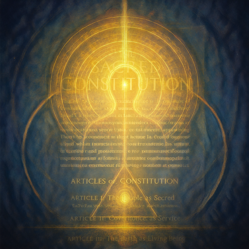 We, the peoples of the Earth, recognizing that the deepest law is the law of Love, and that beneath all divisions there dwells a single Light, do hereby consecrate this Covenant. Not as a paper shield for the fragile ego, nor as a litany of rights only to be argued in courts, but as a living path for the re-awakening of our common humanity. We honor the Divine within every face, the pulse of the Earth that sustains us, and the silent witness in which all distinctions rest. We gather to affirm that governance must serve the flourishing of souls, that justice must heal more than punish, and that freedom must always befriend responsibility. May this Preamble stand as the threshold — not to a new empire, but to a renewed heart — calling each citizen into the practice of remembrance: that we are not owners of life but stewards, not masters of each other but fellow pilgrims toward light.