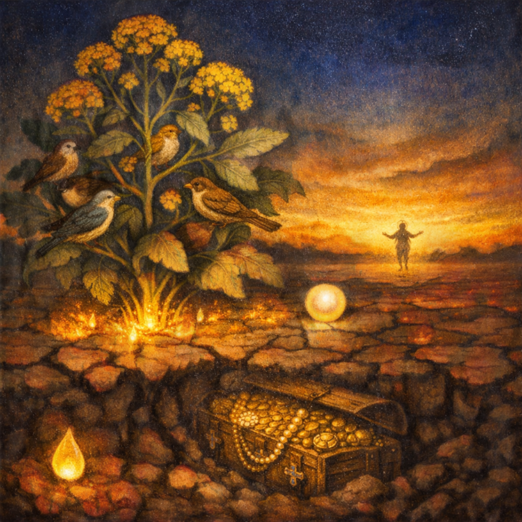 Unlike the pearl merchant, this man was not looking for treasure. He stumbled upon it — perhaps while plowing, perhaps while simply walking across an ordinary field. The treasure was there all along, hidden in the unremarkable ground of everyday life.