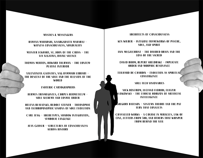 This page is not a bibliography—it is a trail of glimmers, a map of influence, a way to honor the unseen. Each name or school of thought listed here is not cited in any formal sense, but their vibrations pass through these writings like wind through reeds.